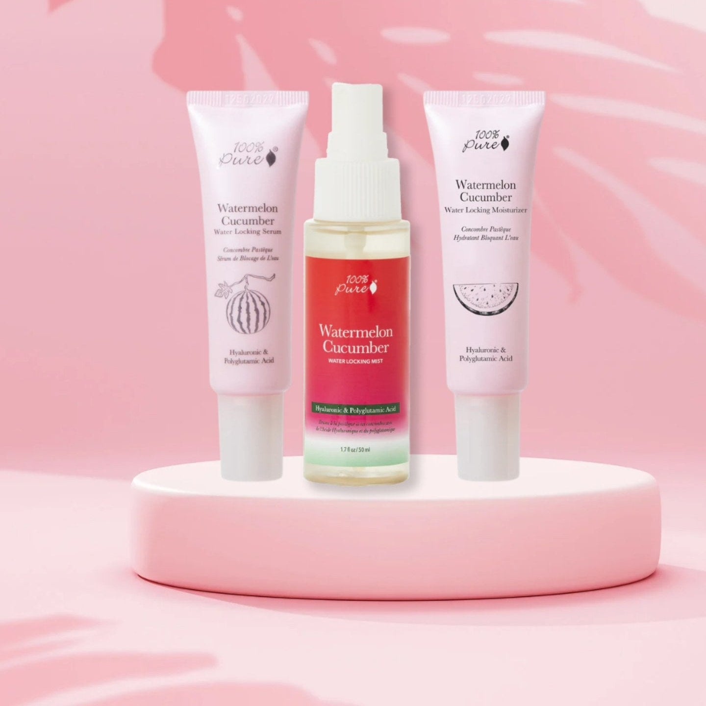 Revitalize and hydrate your skin with 100% Pure Watermelon + Cucumber Water Locking Moisturiser, a lightweight yet deeply nourishing formula designed to lock in moisture and restore skin elasticity.