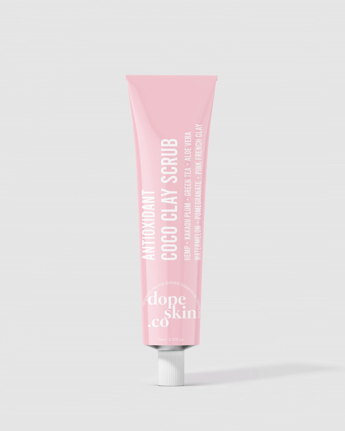 Aloe Vera Juice, Rose Water, Kaolin Clay, French Pink Clay, Ground Hemp Seeds, Hemp Seed Oil, Sweet Almond Oil, Stearic Acid, Cetyl Alcohol, Cetearyl Olivate, Sorbitan Olivate, Vegetable Glycerine, Hemp Seed Extract, Cocamidopropyl Betaine, Sodium Cocoyl Isethionate, Kakadu Plum Extract, Pomegranate Extract, Rosehip Extract, Watermelon Extract, Green Tea Extract, Coconut Flakes, Panthenol (Vitamin B5), Niacinamide (Vitamin B3), Xanthan Gum, Allantoin, Phenoxyethanol, Sodium Dehydroacetate, Salicylic Acid (0.3%).