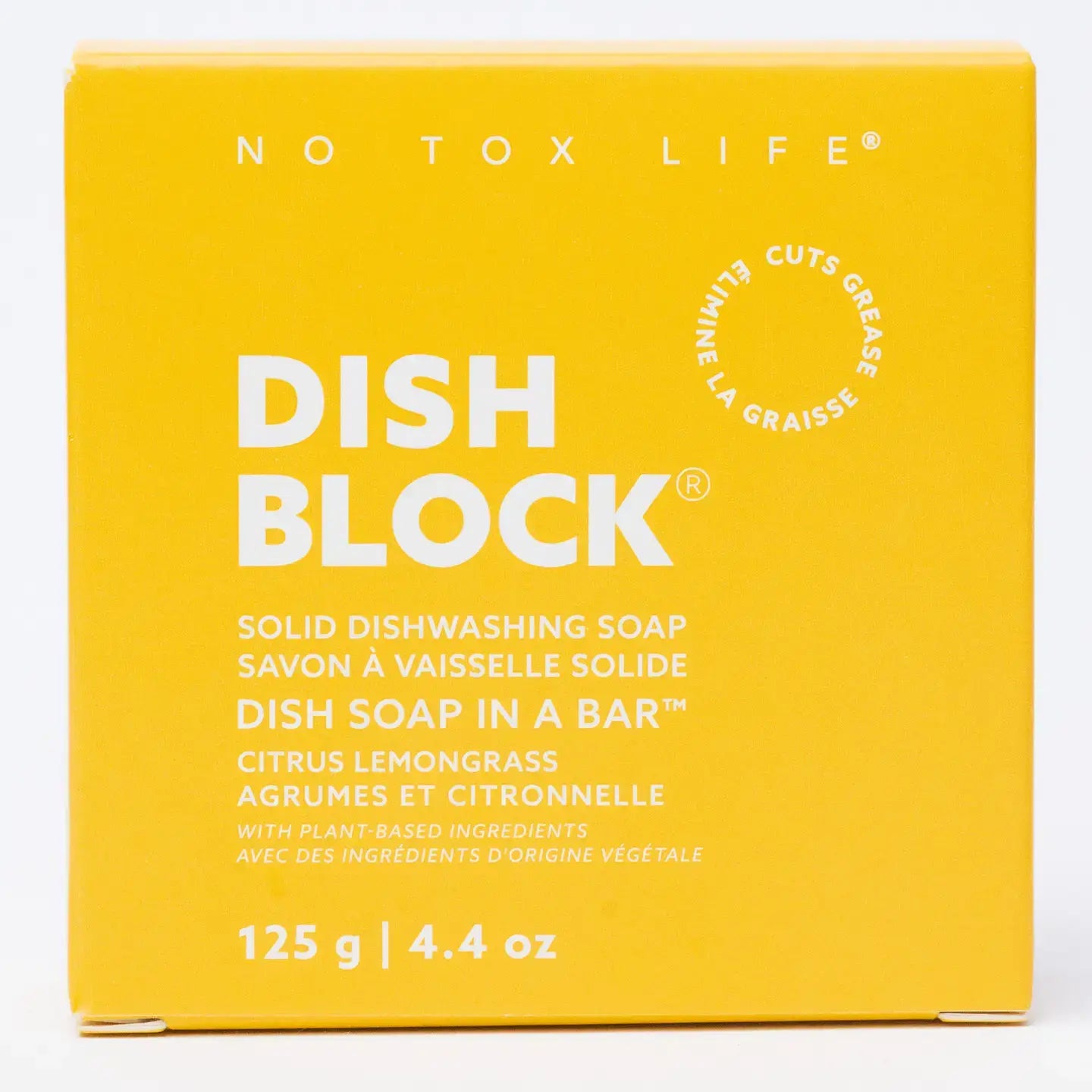 Dish Block® Solid Dish Soap Bar – Citrus Lemongrass 4.4oz | No Tox Life® is a naturally powerful and eco-conscious cleaning bar for your kitchen and home. Each compact bar delivers strong grease-cutting performance in all water types while remaining gentle on hands thanks to aloe vera. Now with a fresh, uplifting citrus lemongrass scentfor a clean, invigorating wash.
