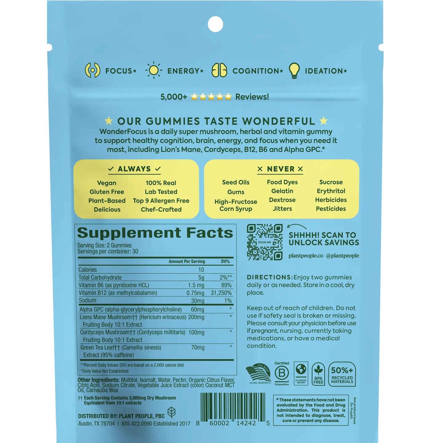 WonderFocus™ Super Mushroom Gummies are zero-sugar, jitter-free daily gummies designed to boost energy, focus, cognition, and mood—without crashes or overstimulation.*