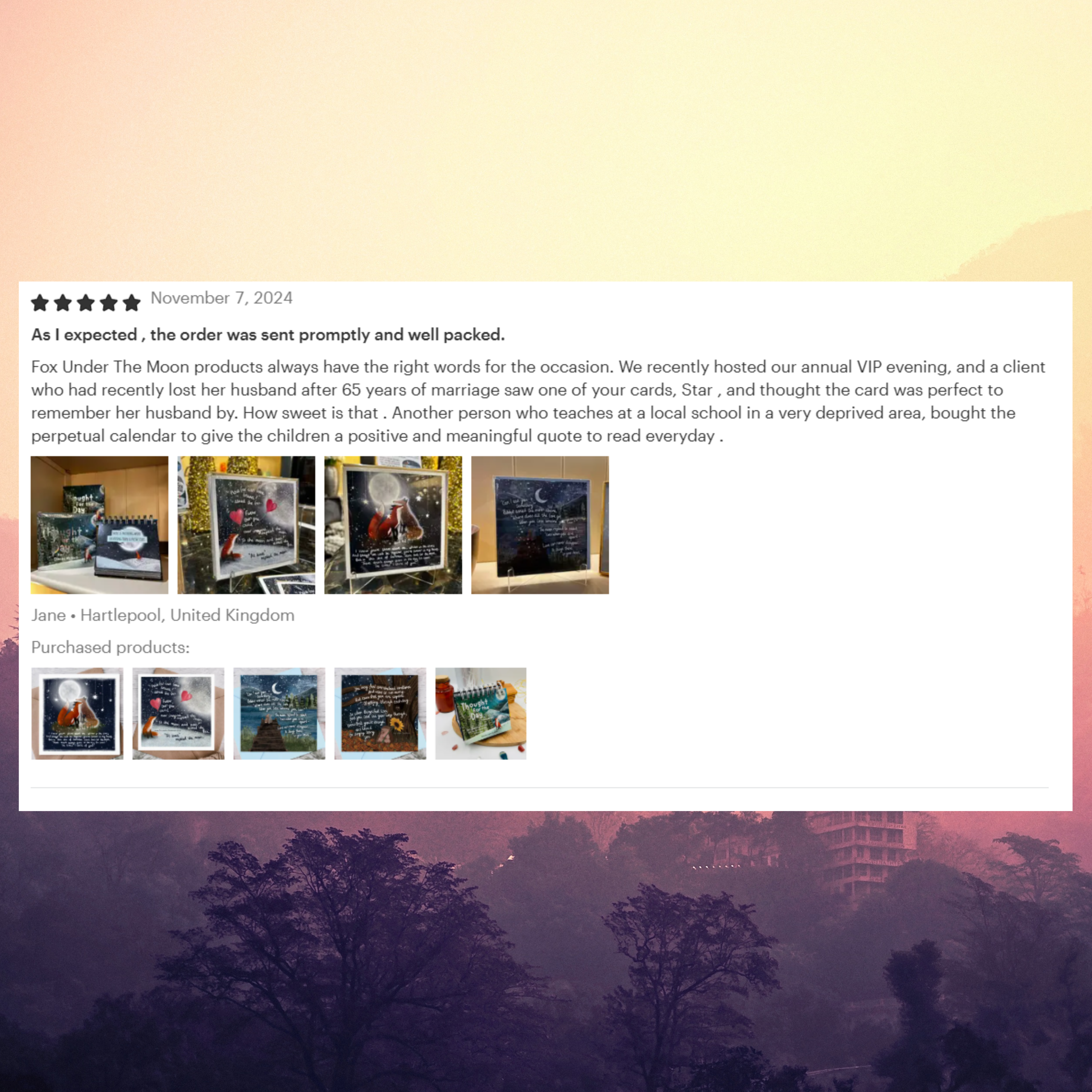 This card is a calming, thoughtful choice that supports wellbeing and reflection. Part of the Fox Under The Moonrange, it is eco-conscious, produced in the UK, and versatile across many occasions.
