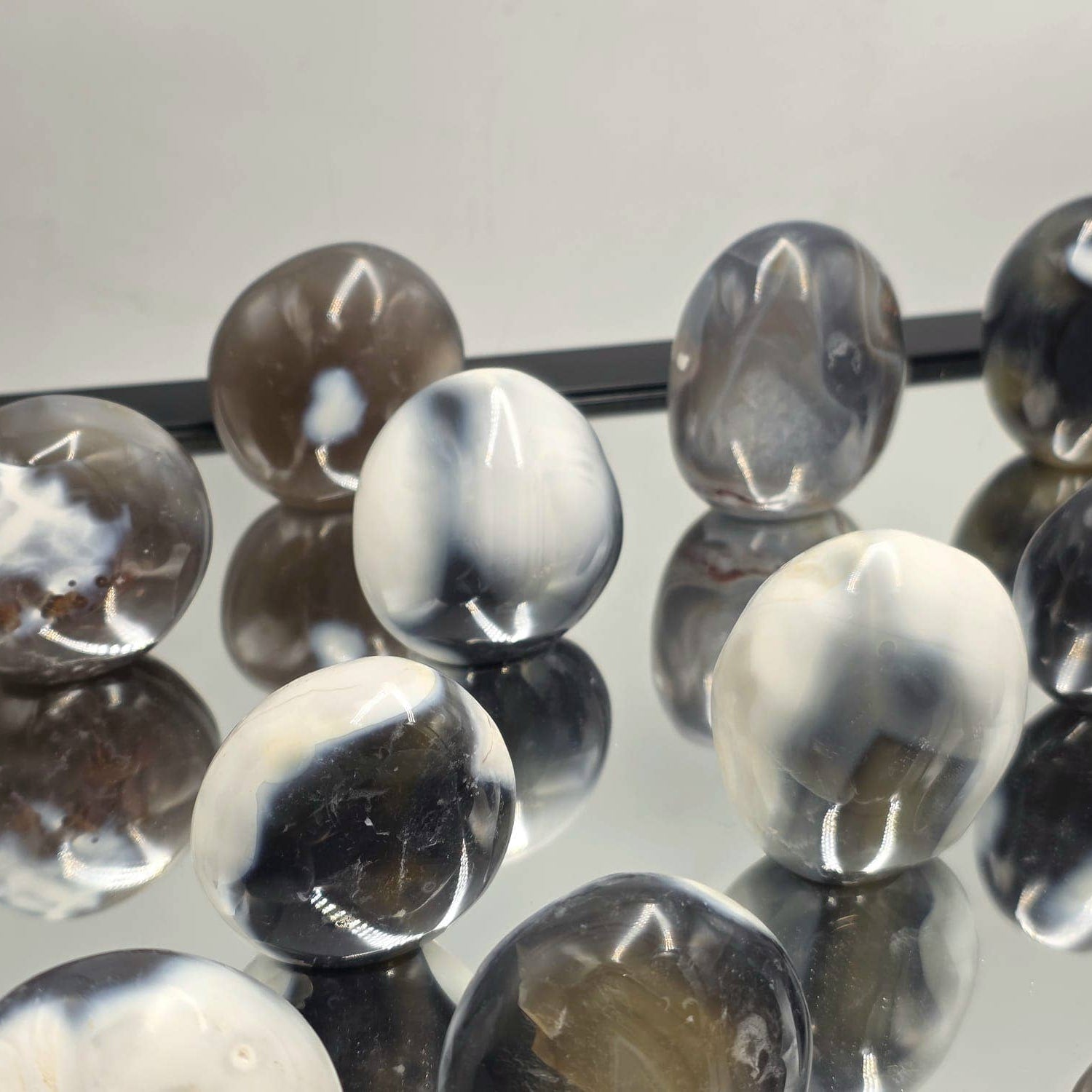 Bring a touch of natural elegance to your crystal collection with these Mini Orca Agate Freeforms. Each piece is hand-carved and polished from Madagascar, featuring the unique black-and-white orca-like patterns that make this agate so distinctive.