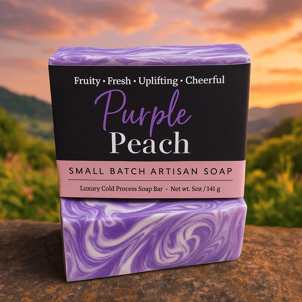 Indulge in the vibrant scent of our Purple Peach Soap Bar, a 5 oz handcrafted artisan bar that blends juicy peach with soft floral undertones. Inspired by the rare, sun-ripened purple peaches of Georgia and Florida, this soap offers a playful yet elegant fragrance experience.