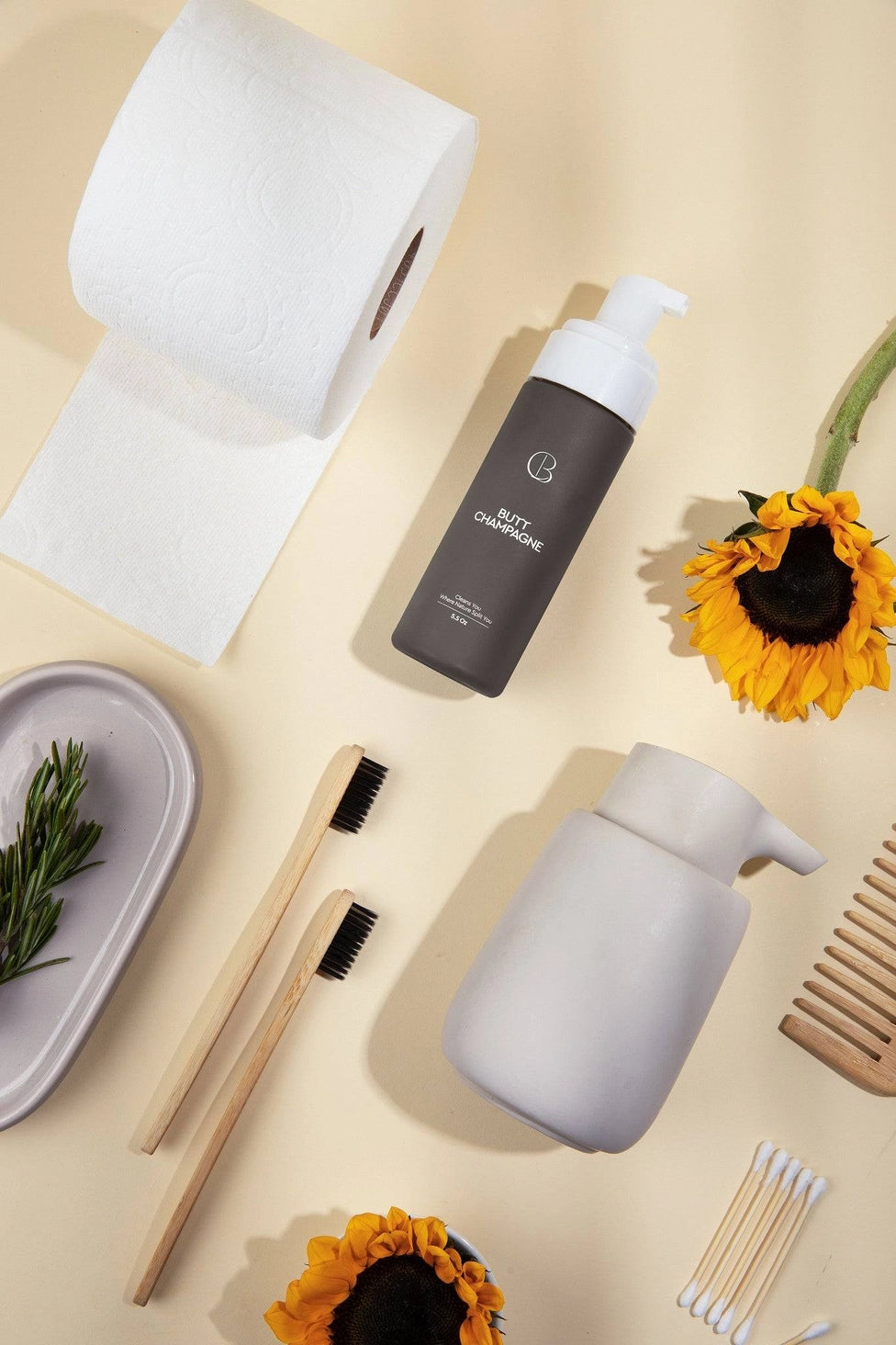 Butt Champagne is a certified organic, plant-based toilet paper foam that transforms dry wiping into an elevated hygiene ritual. Simply apply the velvety foam to your toilet paper for a gentle, refreshing clean that leaves you feeling noticeably fresher—without wipes, chemicals, or plumbing problems.