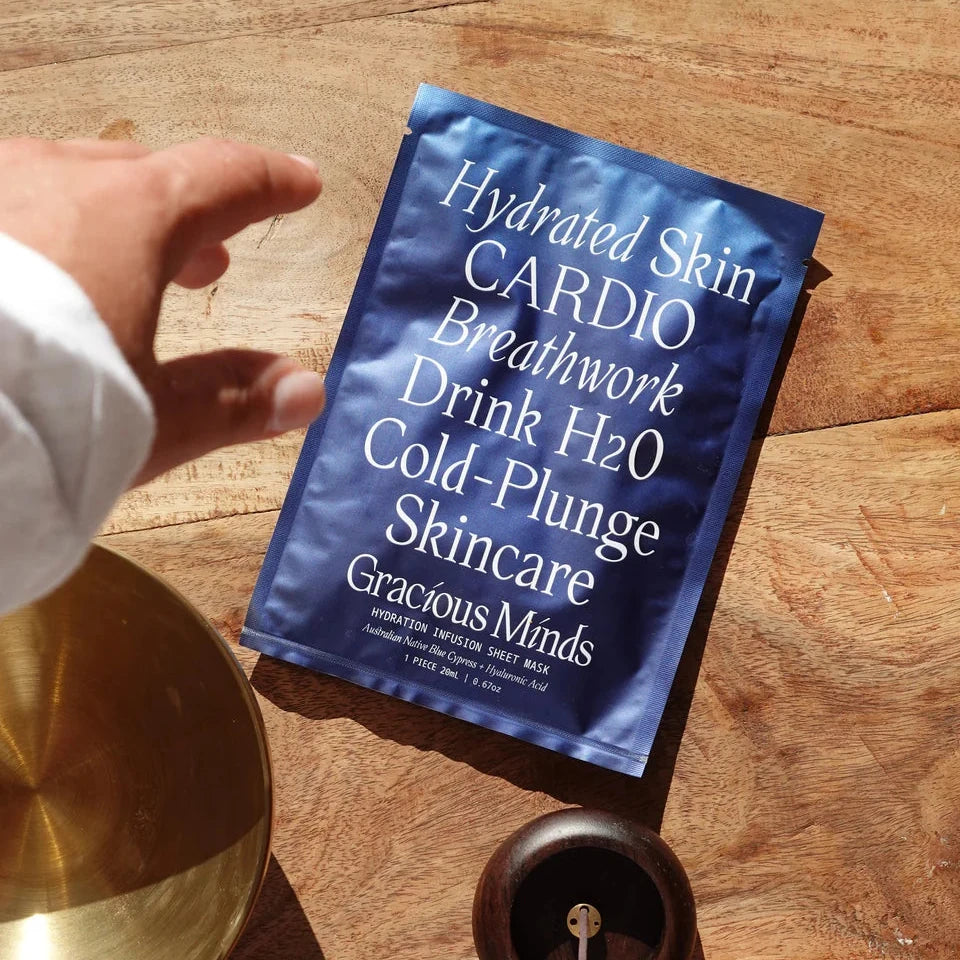 Restore balance and radiance with the Hydration Infusion Mask, a deeply replenishing sheet mask designed to quench thirsty skin and calm irritation. Infused with Hyaluronic Acid, Australian Native Blue Cypress, and Marshmallow Extract, this serum-soaked mask delivers instant hydration, plumps fine lines, and strengthens your skin’s natural elasticity.